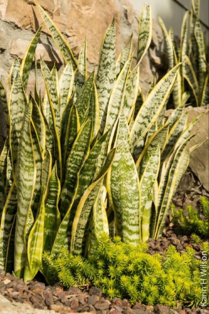 نبات جلد النمر Sansevieria trifasciata ومن اسمائه الشائعة ايضاً نبات الثعبان. موطنه الأصلي أفريقيا الغربية الاستوائية، وله عدة أنواع تختلف في أحجامها ودرجات تلون أوراقها بين الاخضر والاصفر. يزرع نبات جلد النمر لجمال لون أوراقه في الحدائق الصخرية مع غيره من الصباريات أو منفردًا. ويمكن زراعته في أصص واحواض كنبات داخلي لتزيين الغرف وصالات الجلوس او الاستقبال او حتى بيئات العمل خصوصاً ان الوان هذه النبتة تساعد في اضافة لون مميز للمكان. ايضاً تشتهر نبتة جلد النمر بأنها احد افضل النباتات المنقية للهواء.